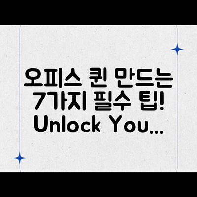 여기서는 오피스 퀸 키우기를 통해 자신감을 높이는 구체적인 방법을 단계별로 안내합니다. 이 지침을 통해 당신의 커리어와 삶에 실질적인 변화를 만들어보세요!