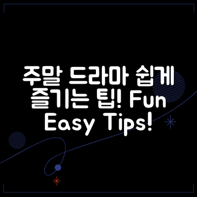 주말 드라마를 더욱 즐겁게 감상하기 위한 팁을 소개합니다. 다양한 작품을 경험해보세요!