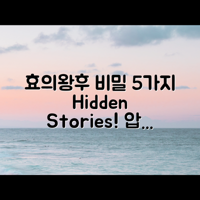 이러한 정보를 통해 효의왕후가 단순한 왕비가 아니라, 조선 시대의 중요한 정치적 인물로 자주 언급되는 이유를 알 수 있습니다. 그녀의 숨겨진 이야기를 통해 역사적 맥락을 이해하고, 선조들의 삶을 배워 나가는 기회를 가져보세요.